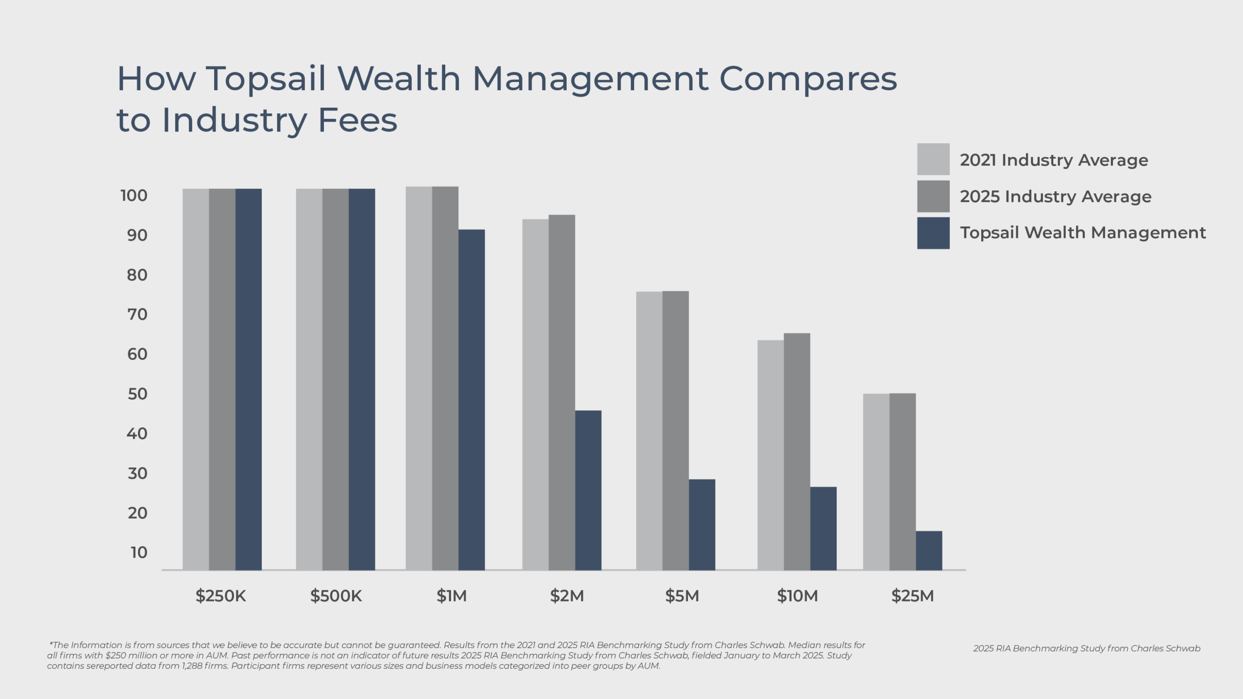Fees are subject to change. More information about Topsail’s investment advisory services, including our fee schedule, can be found in our Form ADV and/or Form CRS. Information is from sources believed to be accurate but cannot be guaranteed.